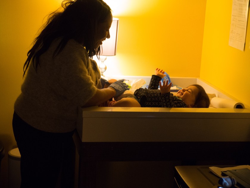 Lisa braving what lies in my diaper.